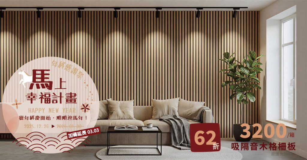 我們的吸隔音木格柵板可採用鎖釘或可拆式施工,日後拆除搬家也能再利用。(租屋族在安裝前,請先跟房東溝通好,在進行施作唷~!避免事後爭議。)