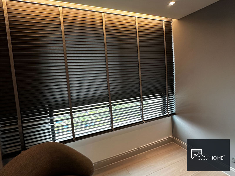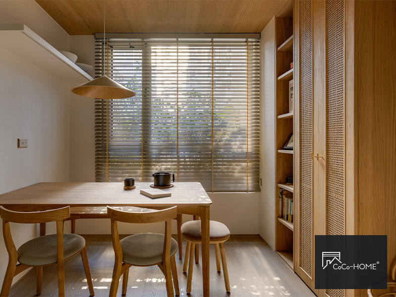選胡桃木百葉真的不會錯!有質感又耐看,不管光線開合到哪個角度,光影灑進來的層次都超美。感覺比布簾更高級,家裡瞬間像樣品屋。