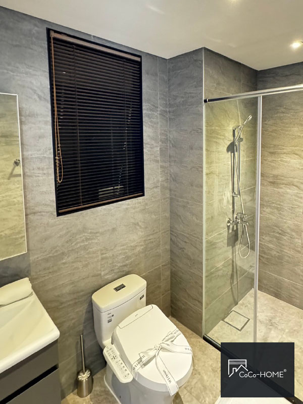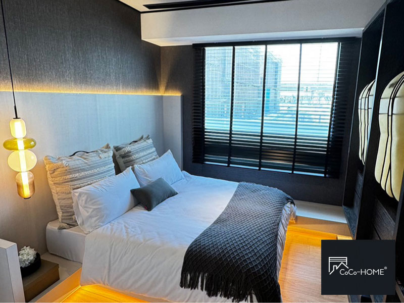 我一直很喜歡柚木的顏色,帶點老屋風格但又不會老氣。我將它作為隔斷浴室與臥室,裝上後整體空間的調性穩下來,窗簾也很有份量感,調節順手,質感真的很好。