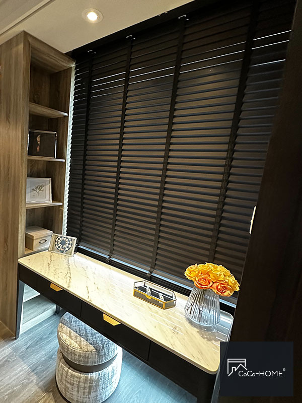 原本怕深色會壓空間,但這款茶黑意外地有質感,搭配淺色牆面超有對比感,光線從百葉間灑進來的感覺太迷人,每天都忍不住多看幾眼。